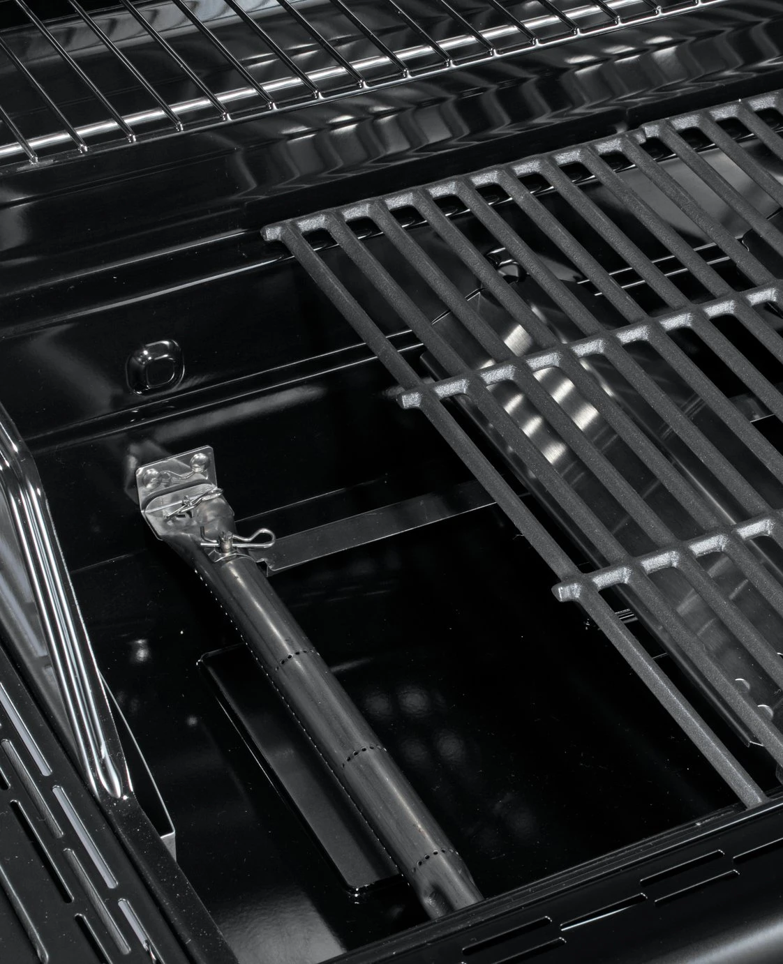 Coated cast iron grates for greater heat retention and perfect sear strip marks. The grates are durable, rust-resistant and easy to clean.