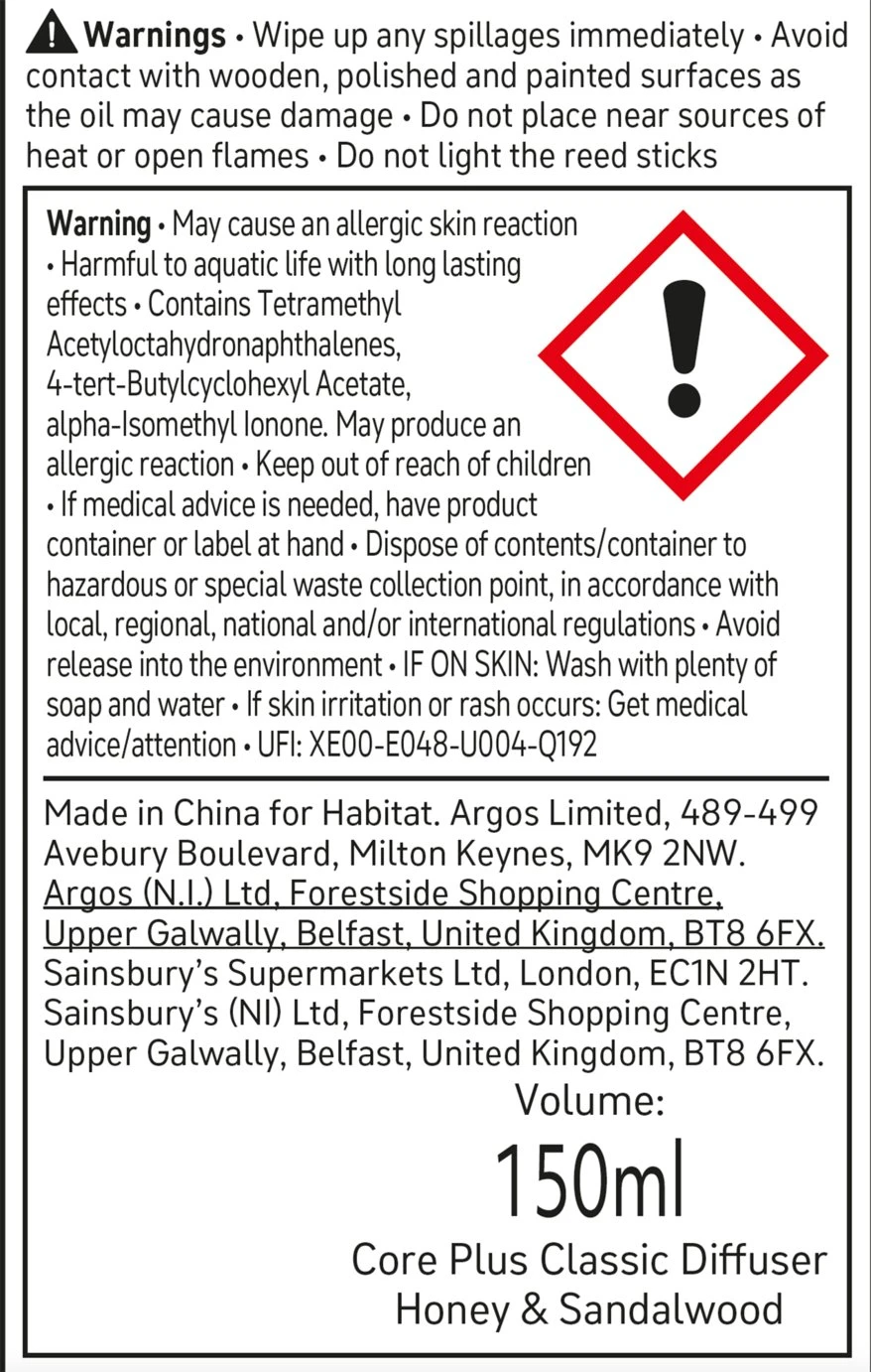 Habitat 150ml Scented Diffuser – Honey & Sandalwood