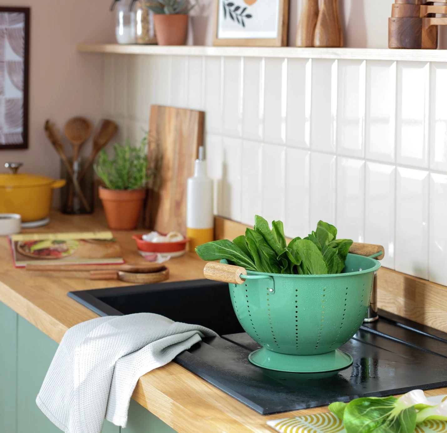 Habitat Enamel And Wood Colander
