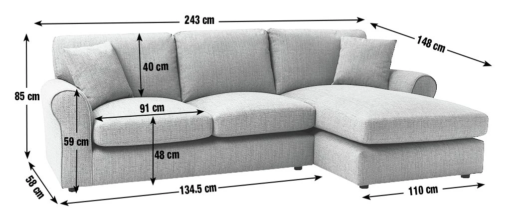 Sink in. Our classic Lisbon collection features deep seat cushions, generous scroll arms and cushioned backs. Upholstered in a textured charcoal fabric for effortless style. This corner chaise sofa is all about relaxation and comfort.