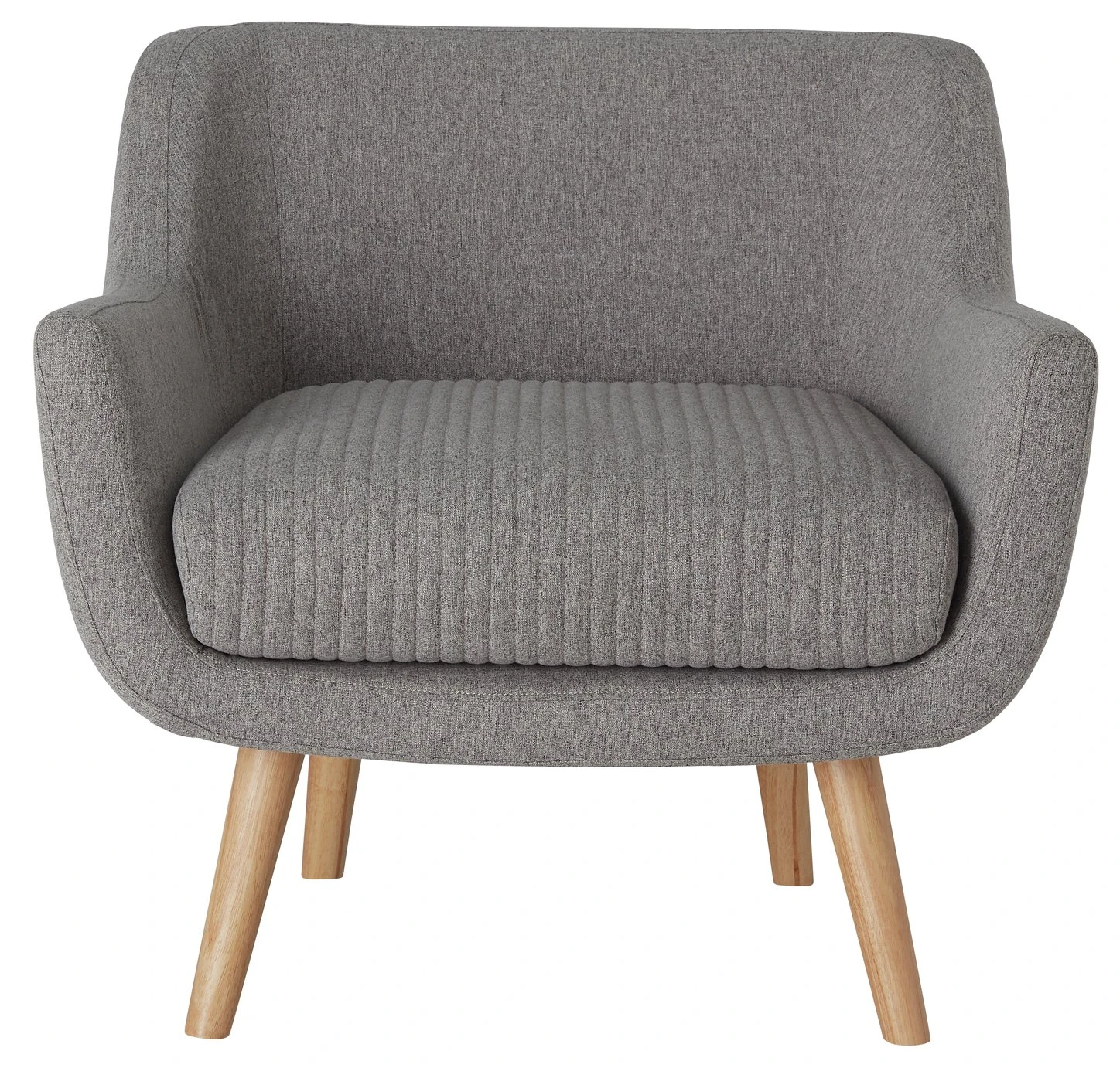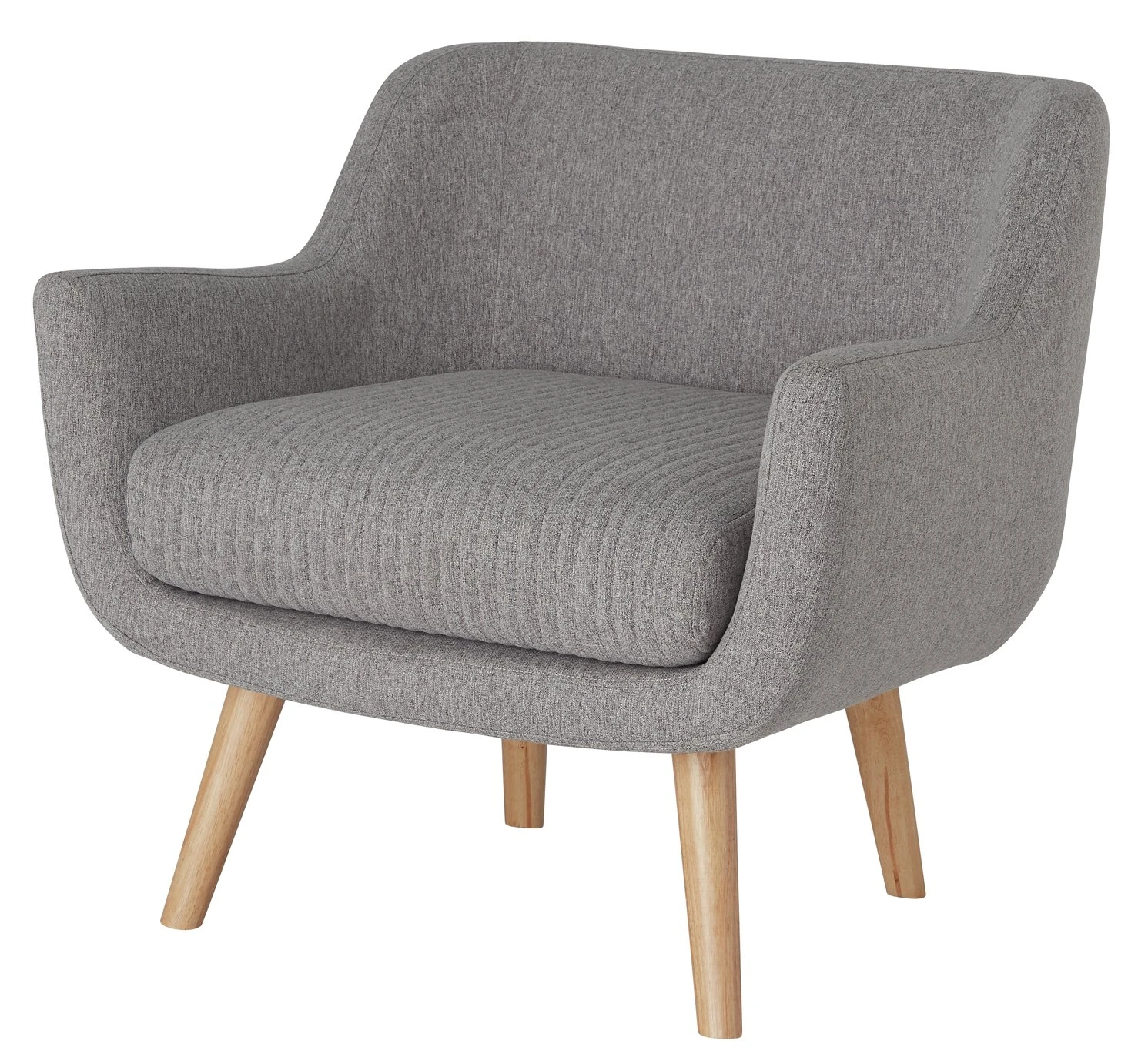 Do you enjoy long evening reading sessions? Well, the Habitat Nellie was made for them. It offers notes of Scandinavian style, from its angled wooden legs to its modern grey hue. It will seat you comfortably with its wide seat and generous cushioning. Details such as its low curved arms and quilted seat cushion give this accent chair a stylish edge. Just a couple more pages.