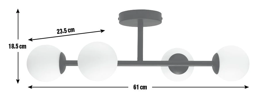 Our glass orb lighting feature is as at home in the living area as it is in the bathroom. Bringing a twist of modernity to a classic style. A bold matte black bar supports four opaque glass globes. And as it's flush-fitting, you don't need a high ceiling to create an impact.