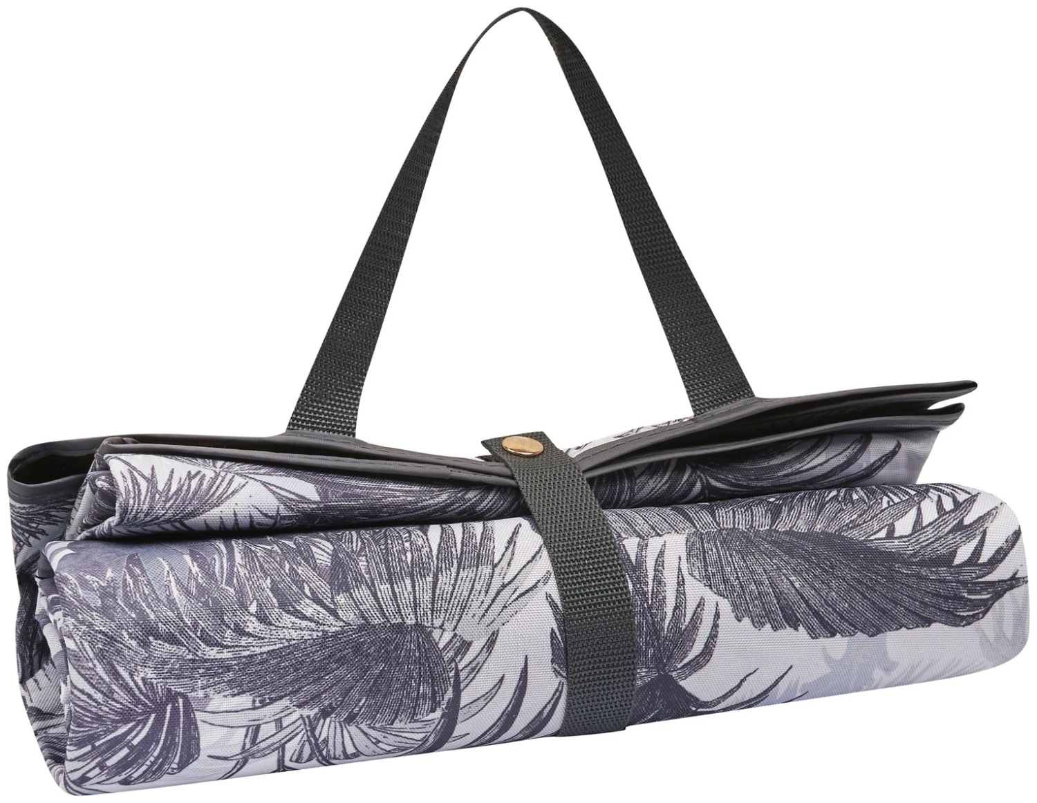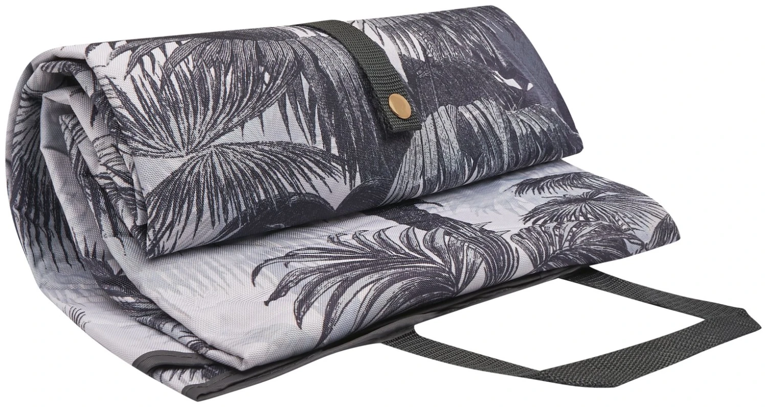 This stylish palm tree print picnic rug is perfect for family day trips or an afternoon in the garden. Features easy grip handle and webbing strap with popper to secure the rug when rolled, for both easy carrying and storing. Lined with waterproof backing, your picnic.