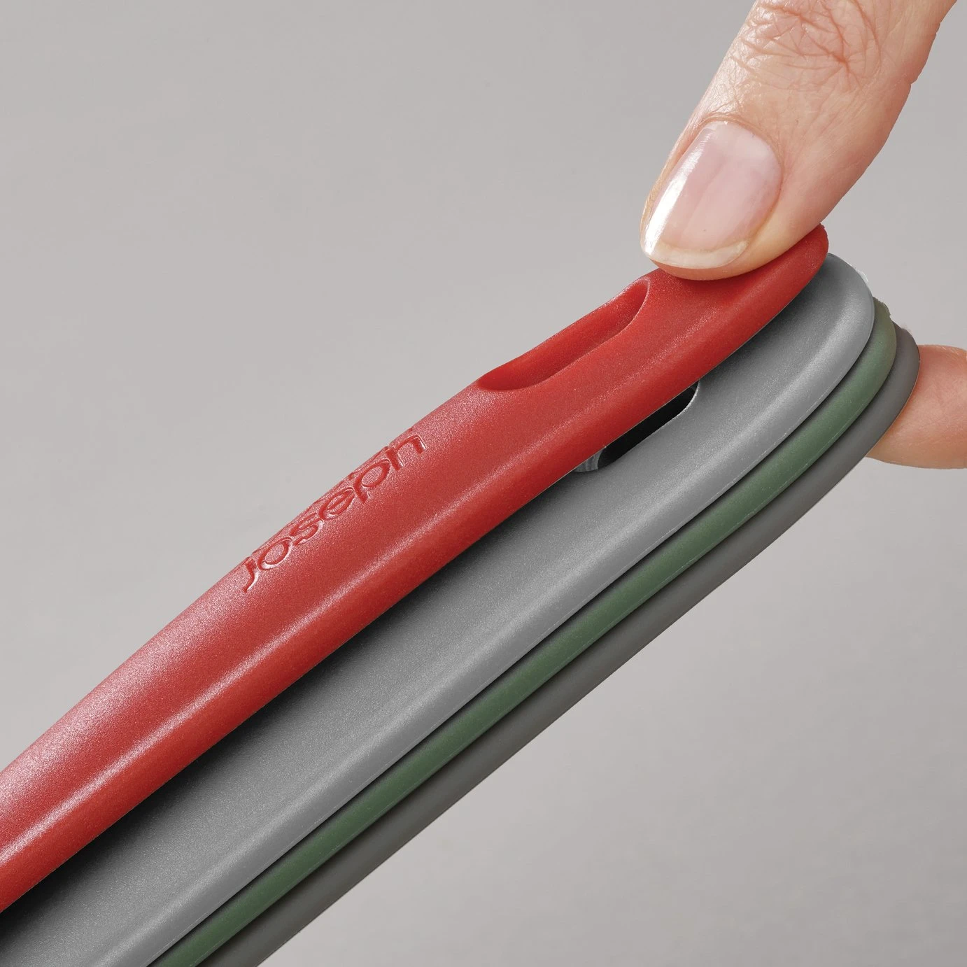 Update your kitchen tools with this Joseph Joseph Duo 4-piece utensil set. The cleverly designed handles clip together so you can tuck them away neatly in a drawer – the perfect space saver. The colourful set is heat resistant up to 200C.