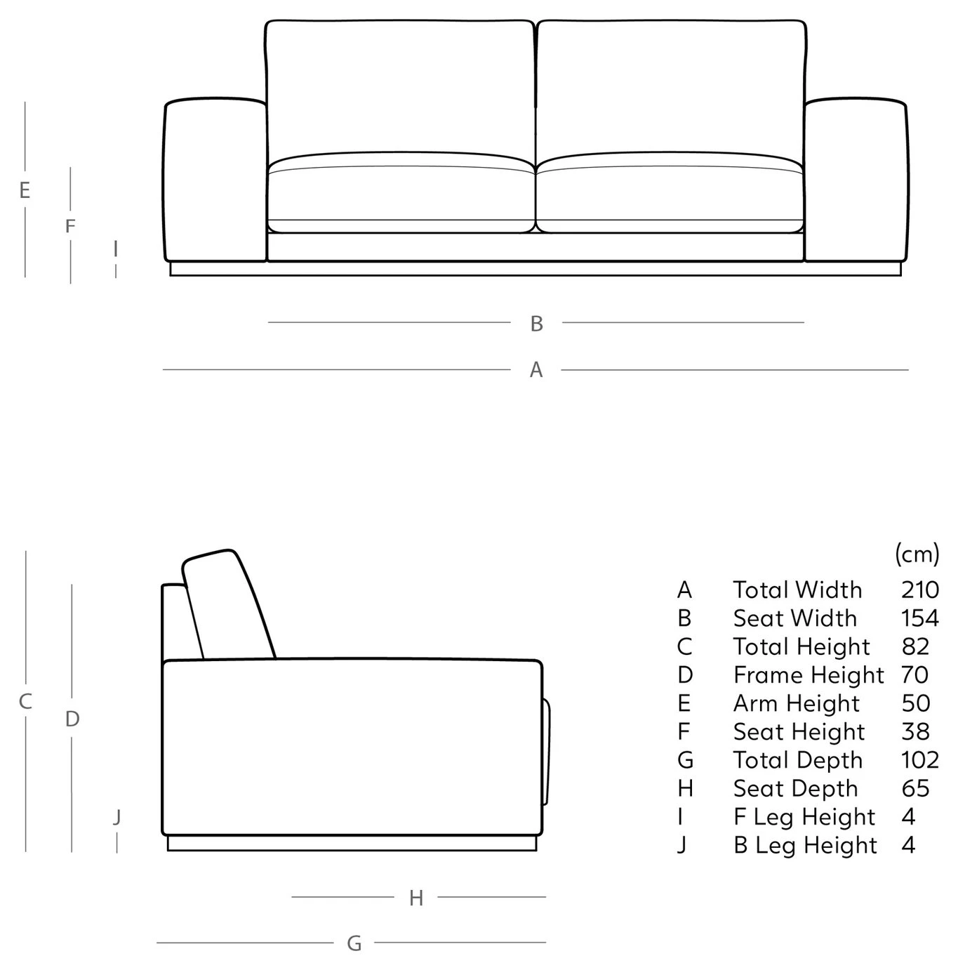 - Size H82, W210, D102cm.