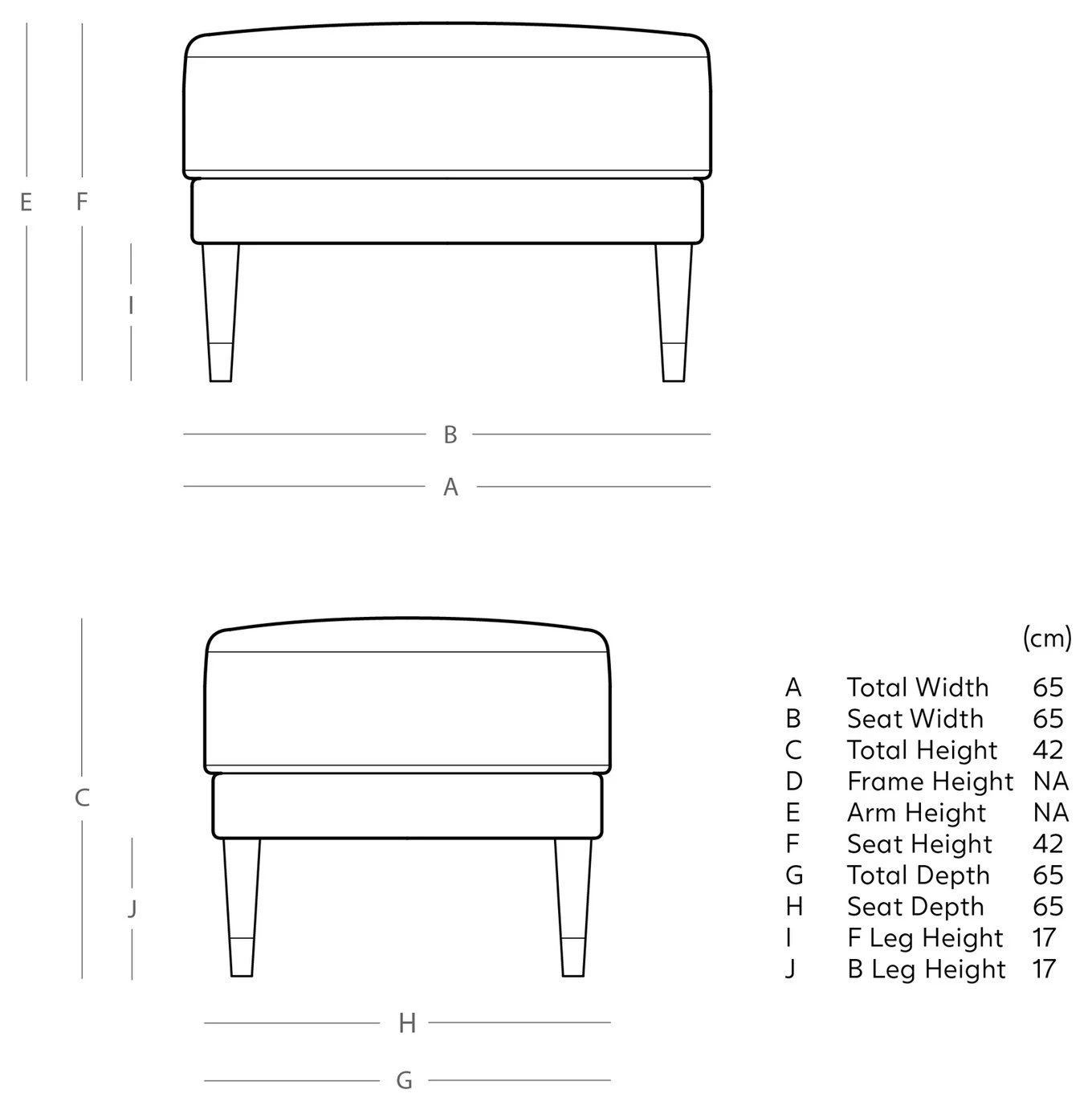 - Size H42, W65, D65cm.